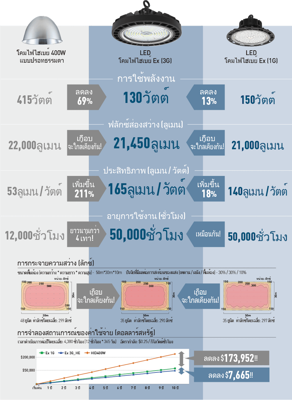 เมื่อเทียบกับ LED รุ่นเก่า LED รุ่นใหม่จะช่วยเพิ่มประสิทธิภาพ